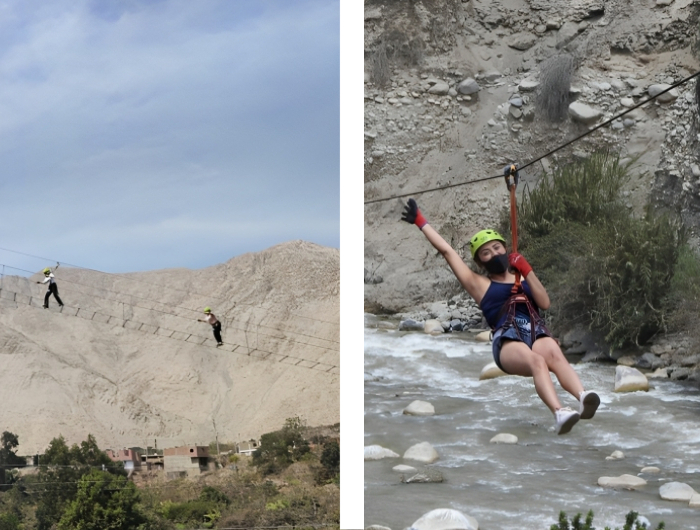 Servicio, el cual consiste en cruzar el rio a través del puente estilo tibetano, para luego retornar en la bicicleta extrema, Seguidamente se vuelve a cruzar a través y de forma ascendente por la escalera al cielo, estando al otro lado del rio descendemos 50 metros a través del rápell y finalmente retornamos hacia este lado por el canopy.